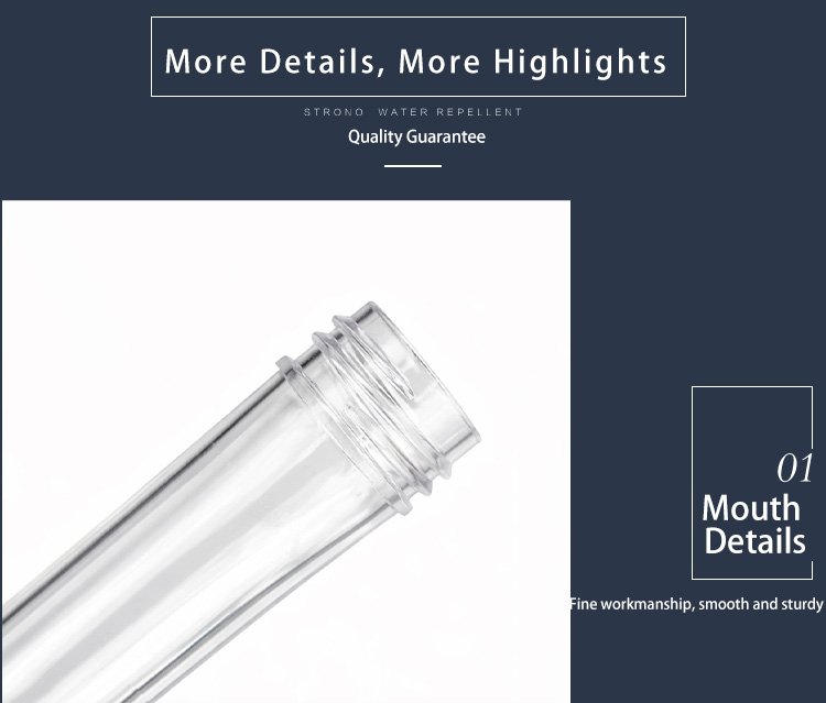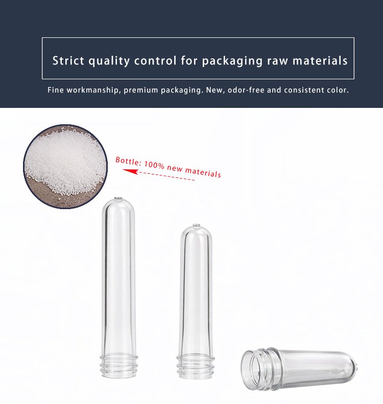 Our PET preforms are made of high-quality food-grade PET material, with high transparency, uniform wall thickness and stable performance. They feature standard thread design, smooth inner and outer walls, no impurities, and excellent blow molding performance. Suitable for beverage bottles, mineral water bottles, oil bottles, cosmetic bottles and other packaging containers. We support customized neck size, weight and height to meet different production needs.